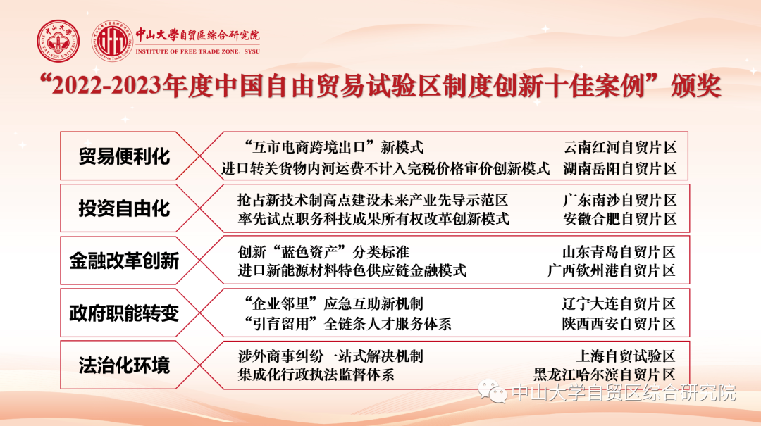 四、“2022-2023年度中国自由贸易试验区制度创新十佳案例”颁奖