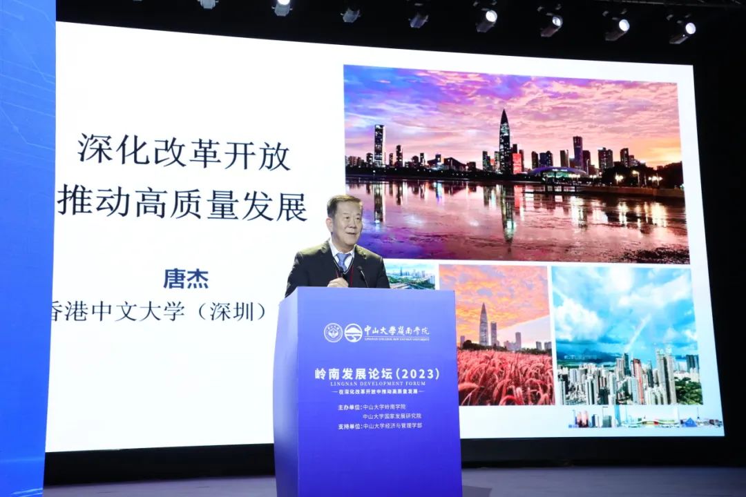 香港中文大学(深圳)理事、深圳市原副市长唐杰教授以《深化改革开放,推动高质量发展》为题发言,分享如何认识和理解高质量发展。唐杰表示,2023年中央经济工作会议强调,完整准确、全面贯彻新发展理念,加快构建新发展格局,着力推动高质量发展,全面深化改革开放,建立高水平科技自立自强。高质量发展和创新有着极其密切的联系,创新是高质量发展的不竭动力。