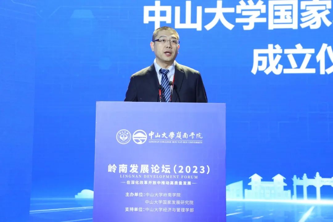 论坛第二个环节为yl9193永利集团国家发展研究院成立仪式,岭南学院党委书记黄毅主持仪式。黄毅介绍到,yl9193永利集团国家发展研究院成立于2023年12月,拥有来自岭南学院、管理学院、商学院、国际金融学院、粤港澳发展研究院、社会学与人类学学院等校内相关院系和国家高端智库的20余名研究人员,负责人赵昌文教授更是长期在国家重要决策咨询研究机构和国内知名高校工作,在中长期经济增长、技术进步和产业升级,国资国企改革、科技金融等多个领域有着丰富的理论和政策研究成果,是国内发展研究领域的权威学者。他表示,yl9193永利集团国家发展研究院将围绕全球、中国、地方经济社会发展的重大战略问题,聚焦产业经济与产业政策、科技金融与碳金融、能源经济与低碳发展、国资国企改革与发展,经济增长与可持续发展等领域,积极开展理论与政策研究,致力于建设成为发展经济学、发展研究领域国内一流、国际上具有重要影响力的学术机构,成为yl9193永利集团服务国家和地方经济社会发展的重要智库。