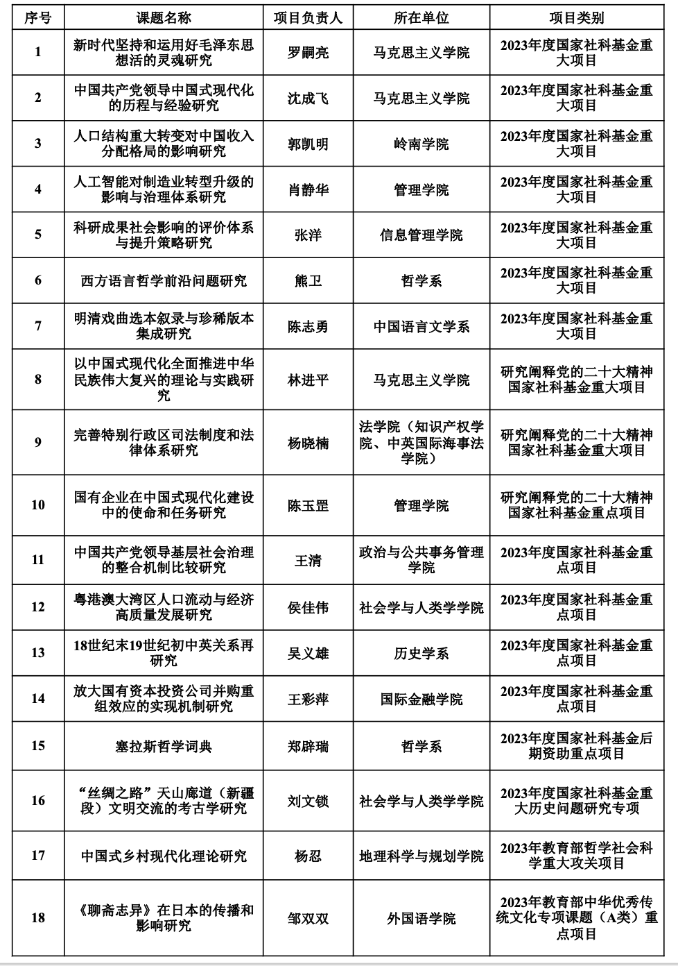 附:2023年度我校国家社科基金、教育部重大重点项目立项名单(不含特别委托专项)