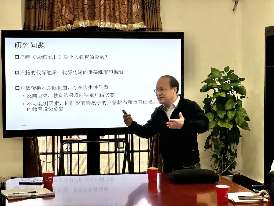 赵忠教授此次交流主题为户籍对教育的影响。赵忠教授指出,户籍决定着住房、社会保险、教育等公共服务与福利项目的可及性。1998年之前子女只能随母亲落户,1998年户籍制度改革后,新生儿和学龄前儿童可以选择继承父亲或母亲户籍,这为个人户籍状态转换提供了一个独特的外生识别。赵忠教授团队研究发现,1998年户籍改革制度后,受改革影响的儿童拥有城市户籍的可能性提高了15.1个百分点,儿童适龄入学的可能性提高了18.9个百分点。研究进一步发现,这种影响在女孩、受过良好教育的家庭的孩子中更为明显,父母受教育程度高的家庭更能获取户籍制度改革红利。这一研究不仅直观表明了户籍制度改革对教育的改善作用,更加深了我们对教育城乡差异、教育成本和教育期望回报影响因素等方面的认识。