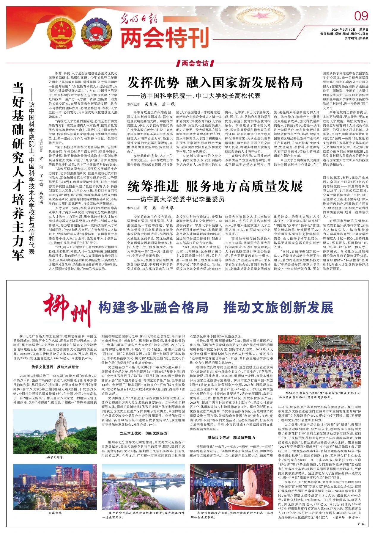 高校是教育、科技、人才三位一体的交汇点。今年的政府工作报告提出,坚持教育强国、科技强国、人才强国建设一体统筹推进,创新链产业链资金链人才链一体部署实施,深化教育科技人才综合改革,为现代化建设提供强大动力。“世界一流大学都是在服务国家和社会发展中不断成长的,高水平研究型大学对于积极融入和服务国家新发展格局责无旁贷,必须更好发挥交汇点和主力军作用。”高松代表说。