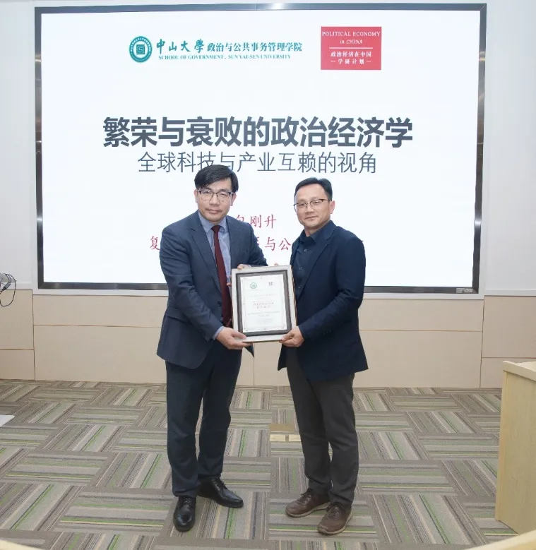 2024年3月21日,“政治经济在中国”学研计划第二期:“繁荣与衰败的政治经济学:全球科技和产业互赖的视角”在yl9193永利集团广州校区东校园政务学院D114讲学厅成功举办。本次讲座邀请复旦大学国际关系与公共事务学院包刚升教授作为主讲嘉宾,由政务学院赵雨淘助理教授主持,副院长黄冬娅教授、梁平汉教授参与学术评议,院长谭安奎教授、罗斯琦副教授、马欣荣副教授等众多师生参加。