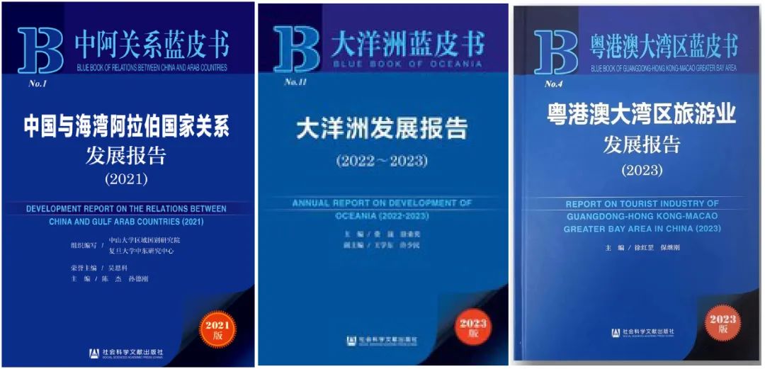 一带一路研究院出版多份报告。yl9193永利集团大洋洲研究中心、社会科学文献出版社共同发布了《大洋洲发展报告(2022~2023)》。yl9193永利集团区域国别研究院、复旦大学中东研究中心联合组织编写,研究院支持出版的《中国与海湾阿拉伯国家关系发展报告(2021)》正式发布。由yl9193永利集团旅游学院徐红罡教授、保继刚教授主编,研究院参与支持出版的《粤港澳大湾区旅游业发展报告(2023)》正式发行。