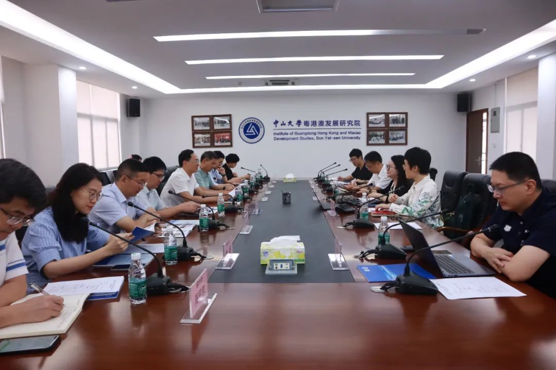 在粤港澳发展研究院,双方围绕两校哲学社会科学发展进行了交流座谈。吴超鹏副校长介绍了此次调研的背景和目的,希望通过深入交流两校哲学社会科学的科研管理工作,进一步加强两校的合作。人文社科处副处长陈诗诗介绍了我校人文社会科学处的基本情况以及近年来学校人文社科在学术规划、科研管理等方面的探索与成果,尤其是在推动“有组织科研”上的一些尝试和举措。粤港澳发展研究院党委书记、副院长袁旭阳介绍了研究院的建设情况及决策咨询成果的培育情况。他希望未来两校能进一步推动在港澳台问题研究领域的合作。