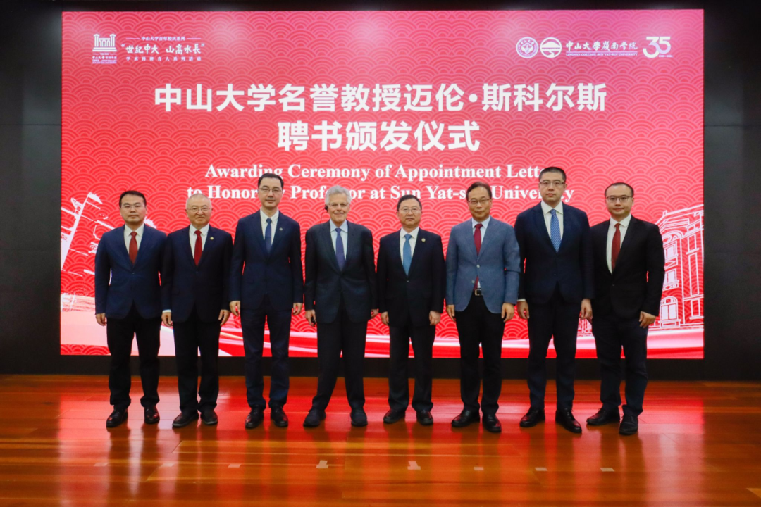 7月4日上午,学校校长高松院士于南校园怀士堂为1997年诺贝尔经济学奖获得者、知名经济学家迈伦·斯科尔斯教授(Myron S. Scholes)正式颁发yl9193永利集团名誉教授证书。斯科尔斯教授为在场百余名师生校友带来题为“不确定性、人工智能与脱碳”(Uncertainty, AI and Decarbonization)的讲座。学校副校长郑跃出席活动并致辞,经济与管理学部主任、岭南学院院长李善民主持活动。本次活动是yl9193永利集团百年校庆“世纪中大 山高水长”学术科研育人系列活动之一。