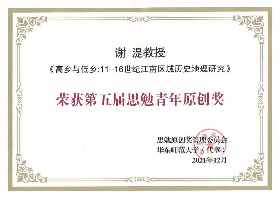 思勉原创奖是华东师范大学为弘扬中国现代著名史学大家吕思勉先生的治学精神,鼓励文史哲领域产出更多原创性研究成果而设立的奖项。该奖以“原创”为引领,提出“观点新颖、见解独到、填补空白、载入史册”的获奖标准,创设以学术质量为导向,以程序公开为特征,以学术创新为目的的评价机制,于2011年首次启动,次年被列入教育部认可的人文社科类重要评奖项目。