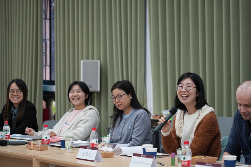外国语学院周春悦助理教授、广东外语外贸大学西方语言文化学院陈湘蓉讲师就发言内容进行点评,她们从历史机构名词的演变、到当今留学所面临的契机与挑战以及国内外高校合作具体方式等诸多方面进行了讨论。