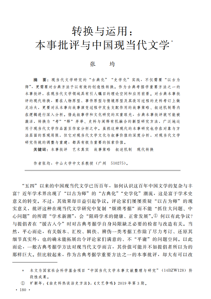 本文刊发于《中国社会科学》2021年第1期,《新华文摘》2021年第8期全文转载。文章认为,中国现当代文学研究的“古典化”“史学化”实践,不仅需要“以古为师”,更需要对古典方法予以有效的创造性转换。作为古典考据学重要方法之一的本事批评,在现当代文学领域具有引人瞩目的应用前景和理论空间。