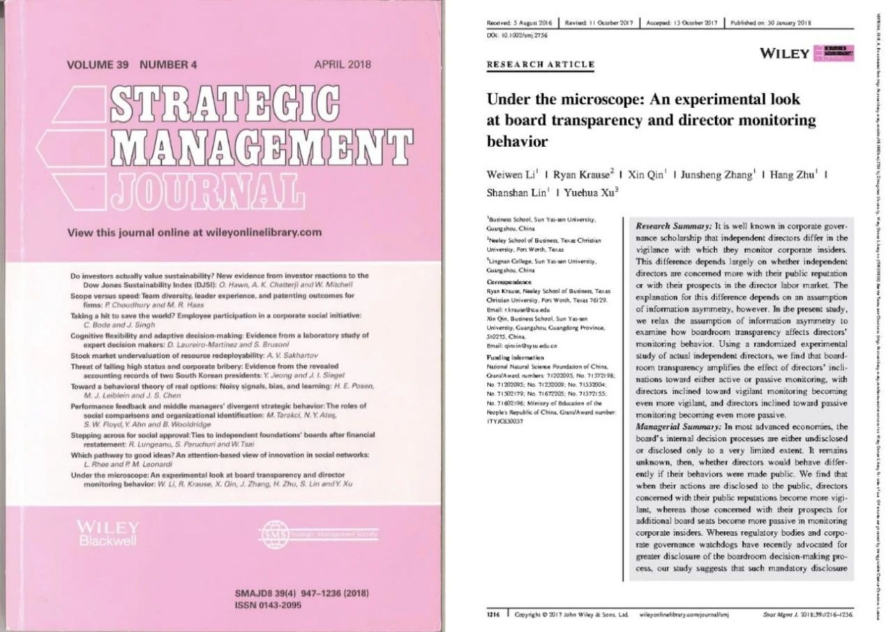 成果名称:Under the Microscope: An Experimental Look at Board Transparency and Director Monitoring Behavior