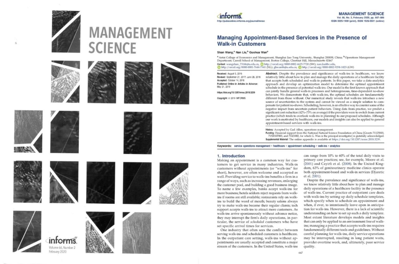 本成果得到了管理学领域和公共卫生与医疗管理领域大量高质量的引用,并在管理学领域的多项国际论文竞赛中获得优胜。本文中的模型与算法得到了上海交通大学附属第一人民医院的应用,提升了该医院的门诊运营绩效。
