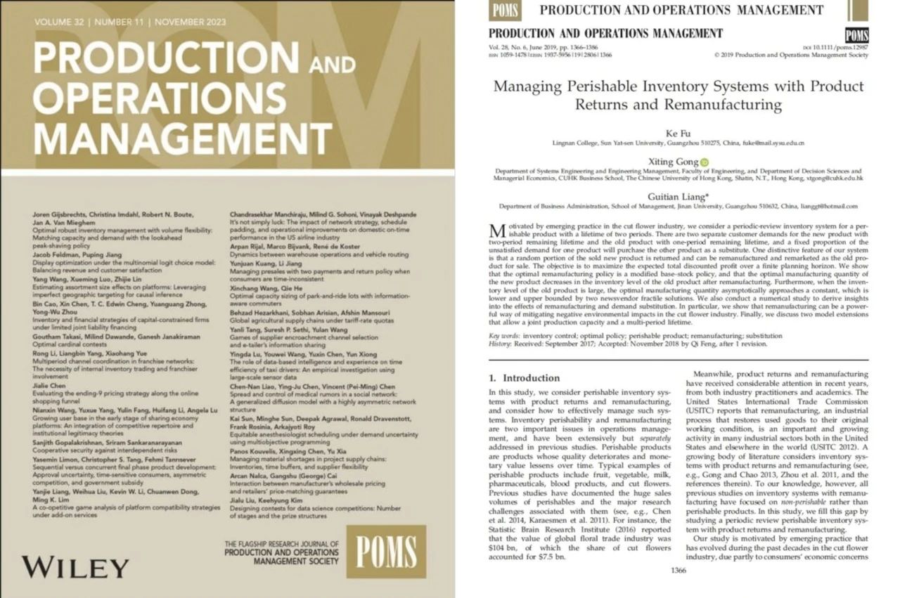 成果名称:Managing Perishable Inventory Systems with Product Returns and Remanufacturing