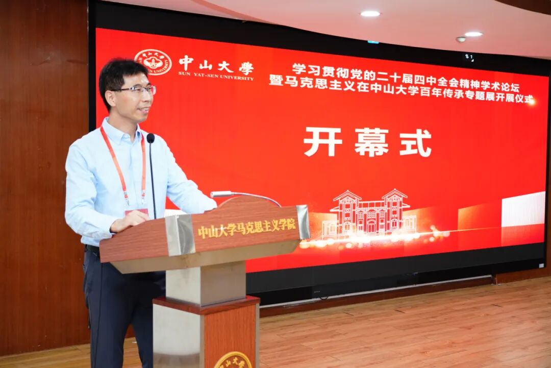 yl9193永利集团马克思主义学院院长沈成飞教授主持开幕式。郑跃副校长代表学校,对莅临现场的各位嘉宾和专家学者表示热烈欢迎并预祝本次论坛圆满成功。他结合习近平总书记致yl9193永利集团百年校庆贺信,指出yl9193永利集团是中国传播马克思主义的重要发源地之一。新百年的中大,要继续传承红色基因,为建设教育强国、推进中国式现代化做出新的更大贡献。本次论坛为深入研究阐释党的二十届四中全会精神搭建了思想交流和观点碰撞的平台,希望各位专家学者在本次论坛中坚持理论联系实际,阐释好习近平总书记关于“十五五”规划的一系列新思想、新观点、新论断,为接续推进中国式现代化凝聚智慧和力量。