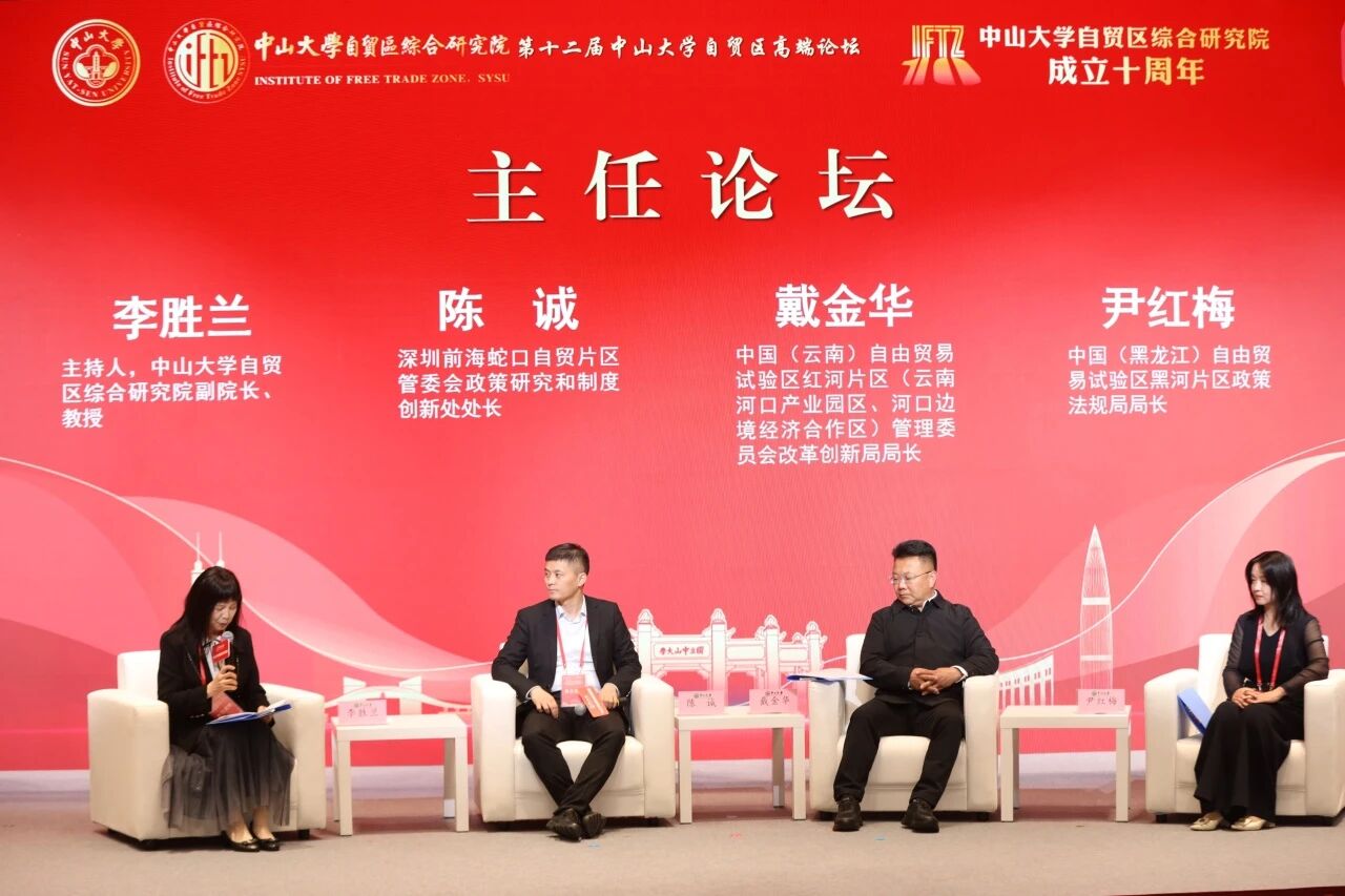 随后的主任论坛环节由李胜兰教授主持,深圳前海蛇口自贸片区管委会政策研究和制度创新处处长陈诚、中国(云南)自由贸易试验区红河片区(云南河口产业园区、河口边境经济合作区)管理委员会改革创新局局长戴金华、中国(黑龙江)自由贸易试验区黑河片区政策法规局局长尹红梅围绕主题展开热烈讨论。