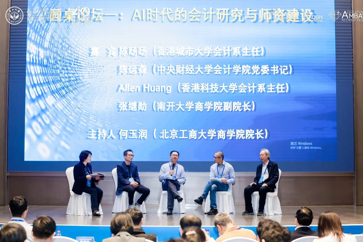 论坛上午场的圆桌论坛环节由北京工商大学商学院院长何玉润主持,香港城市大学会计系主任陈旸旸、中央财经大学会计学院党委书记陈运森、香港科技大学会计系主任Allen Huang、南开大学商学院副院长张继勋围绕“AI时代的会计研究与师资建设” 就AI时代的学术研究、教师队伍构建、跨学科合作等话题各抒己见。