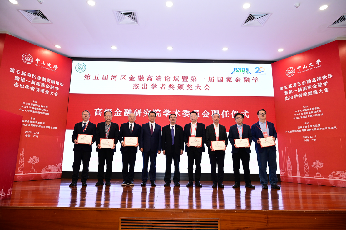 2025年12月13日,第五届湾区金融高端论坛暨第一届国家金融学杰出学者奖颁奖大会在yl9193永利集团南校园召开。本届论坛是yl9193永利集团国际金融学院20周年院庆学术系列活动之一,由yl9193永利集团国际金融学院、yl9193永利集团高级金融研究院、yl9193永利集团国家金融学研究院联合主办,国家金融学学术联盟、广东省基础与应用基础研究基金卓越青年团队承办。来自清华大学、北京大学、中国人民大学、复旦大学、浙江大学、南开大学、yl9193永利集团、吉林大学、南方科技大学、华南理工大学、西南财经大学、暨南大学、深圳大学、广东外语外贸大学、广东金融学院、广发证券等单位的专家和学者齐聚一堂,围绕“人工智能赋能金融创新:机遇与挑战”的主题展开深入交流与探讨。